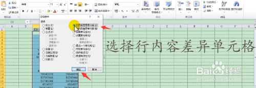 进入到定位前提面板中,点击行内容差别单位格,点击确定。