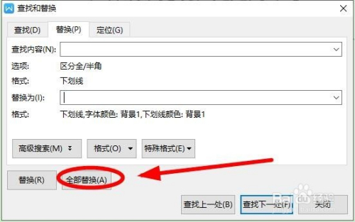 回到“操作和替代”对话框后单击“全数替代”,在弹出的对话框单击“确定”