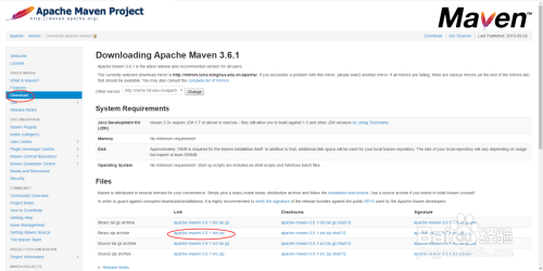 从左侧面板中选择Download,然后右侧选择Binary Zip文件进行下载,如下图所示: