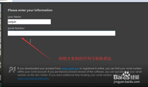 然后到这一步,将之前复制的序列号粘贴到这