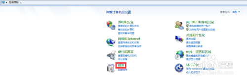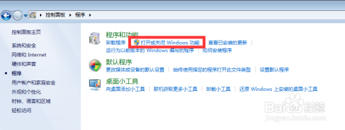 第四步:打开系统节制面板,找到程序一栏,并打开WINDOWS功能。