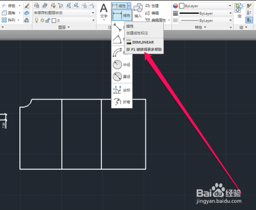 点击线性标注按钮,将鼠标移动图形上。