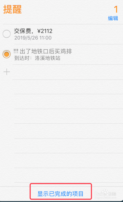 提醒事项列表中即可查看到设置好的事项,如下图: