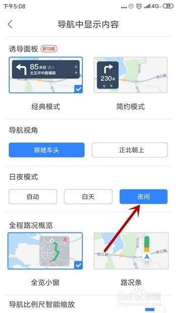 这下我们就能找到【日夜模式】了,把这个选择为【夜间】。