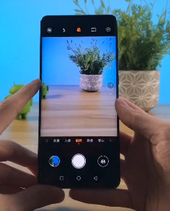 这时手机摄像画面就呈现两个分歧的画面,一个近景,一个前景。