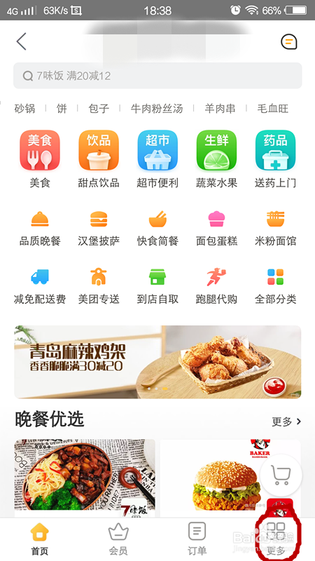 进入到点外卖的界面后,点击下方的更多,这时在页面上会跳出一个小窗口。