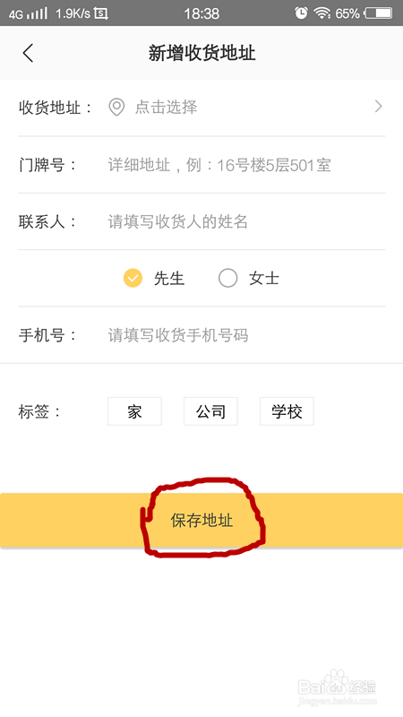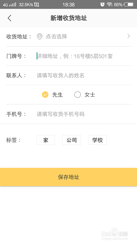 在新增地址的编纂页面,您就可以对新的收货地址进行编写了,为了便利本身,可以设置标签。