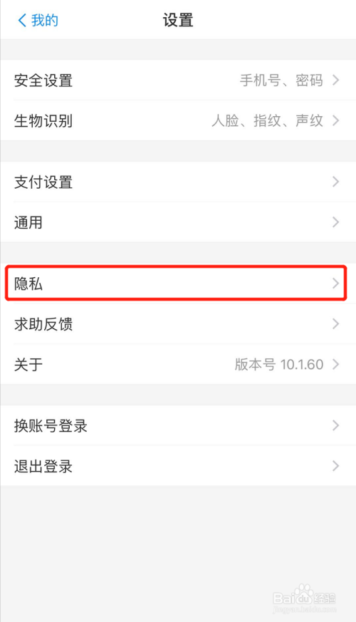 设置本家儿页下细心寻找,找出如图所示的【隐私】一栏,点进该栏!