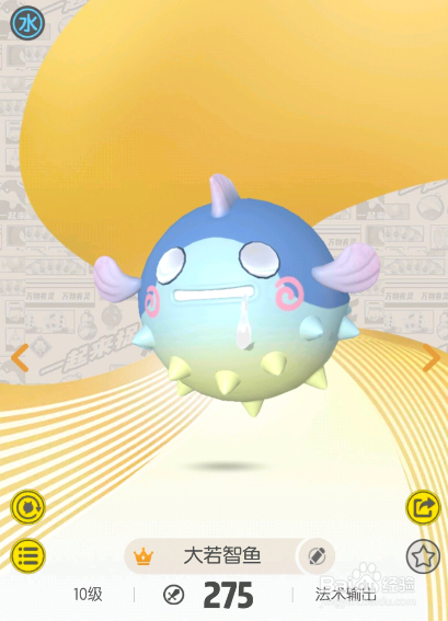 我们可以领会我们的大若智鱼的属性,也就是看到我们的大若智鱼的属性是水属性!