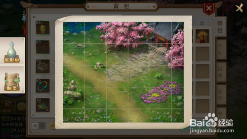 打开盒子后,我们点击利用获得的工具,进行拼图,此次是风月谷,有时辰是桃柳林、管道南等等。拼好之后,点击显影粉,正面背面都点击一下。之后图中会有一个绿点,我们前去绿点处这个山公。