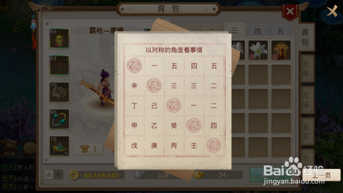 我们从多宝道人这里获得了一个盒子,看到了盒子下方的辛甲等,盒子上四个角也有颜色,我们按照辛是第一个,甲是第二个的挨次点击盒子的四个角。那么我买你点击几下呢?按照提醒的第二页对称的数字来确定。别离点击右下1下,左下4下,右上1下,左上2下。