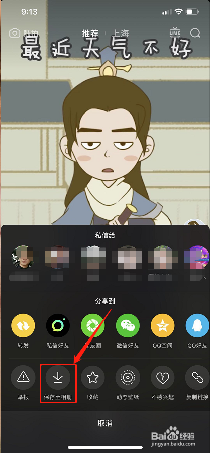 点击“上传”,选择方才保留到相册的视频;