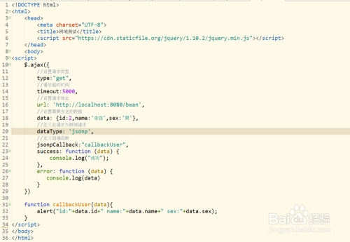 3、编写跨域挪用代码,本家儿如果页面js的编写