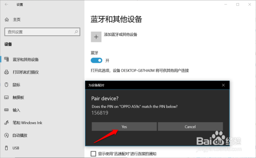 点击yes后,若是能配对,则会弹出第三个为设备配对的窗口: