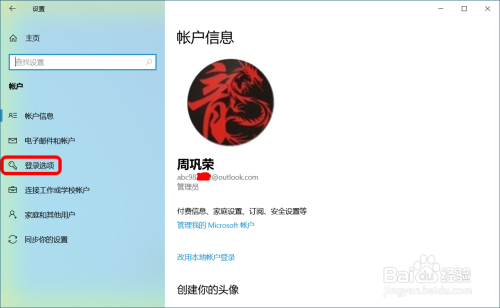 在帐户设置窗口中,点击窗口左侧的【登录选项】;
