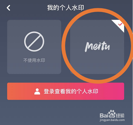 之后在我的小我水印页面内可以看见此刻的设置是会显示meitu这样的默认的水印。
