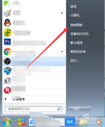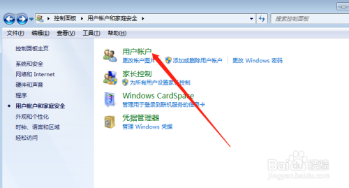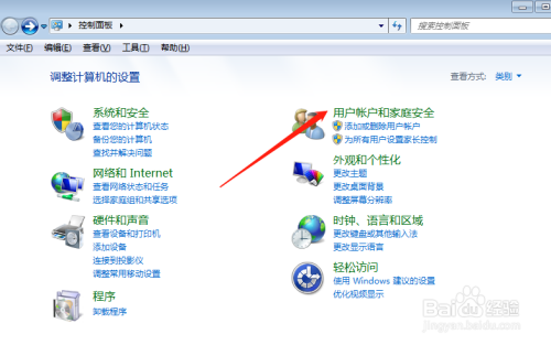 弹出节制面板窗口,我们点击“用户账户和家庭平安”;