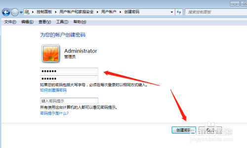 进入密码设置窗口,我们输入自界说密码,输完需要再次输入验证,为了防止我们健忘密码,还可以鄙人方的输入框输入提醒,输入完我们点击建立密码,这样就完当作了密码的设置;