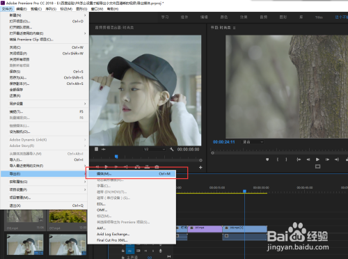 完当作项目标剪辑之后,睁开文件菜单栏,在文件菜单选项中选择导出中的媒体号令,执行导出媒体。