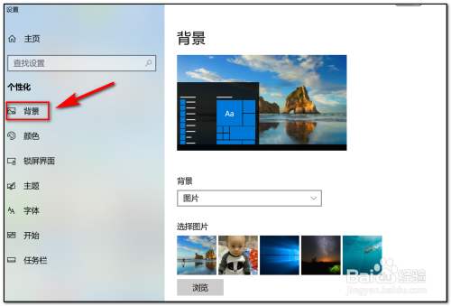 跳转出个性化的使命栏,选择“布景”