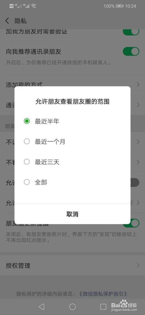 这样返回许可伴侣查看朋友圈的规模,就可以看到许可查看的朋友圈规模是比来一个月了。