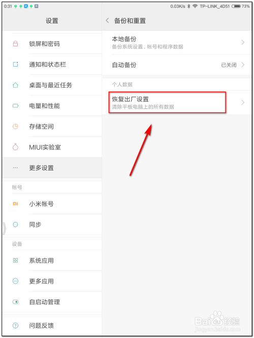 有时辰因为平板数据及应用历程犯错造当作平板不克不及利用,需恢复出厂设置,今天就教大师如何操作。