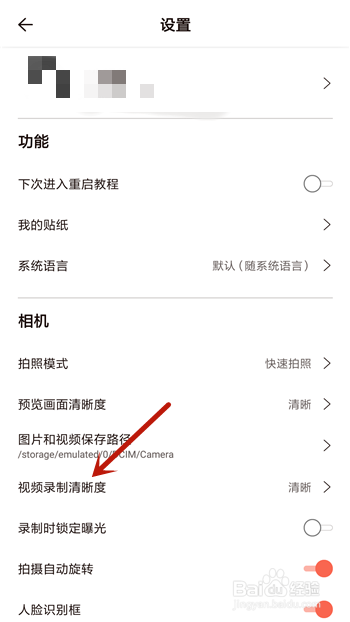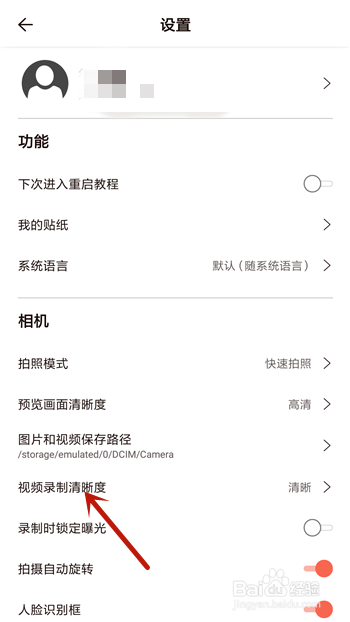 然后在设置界面里就能看到【视频录制清楚度】,默认的是清楚。