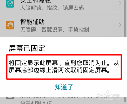 点击后即可固定该屏幕,若是需要打消,可以从屏幕底部边缘上划两次,即可打消屏幕固定。