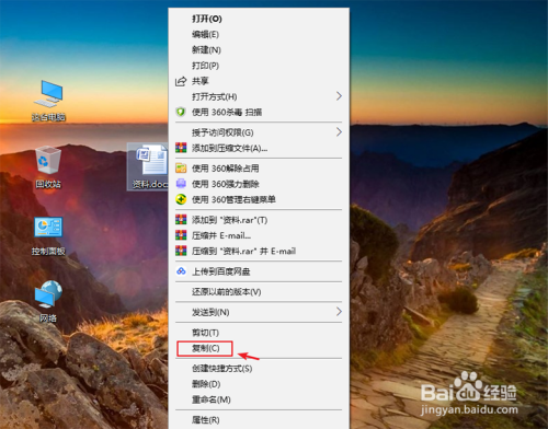 U盘插入电脑后,选择电脑上的文件,鼠标右击,呈现窗口,点击【复制】。