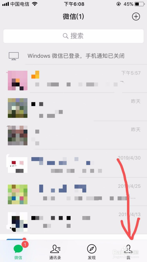首先打开手机微信进入首页点击右下角的“我”;