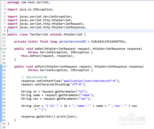 String json ="{'id':" + id +",'name':'" + name +"','sex':'" + sex