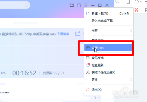 首先打开【迅雷下载】,然后点击右上角的【设置下拉】符号,点击【设置中间】