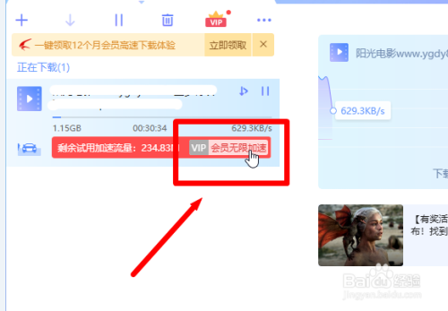 最后也可以在正鄙人载的文件的下方点击【试用加快】,这样就可以提高网速了