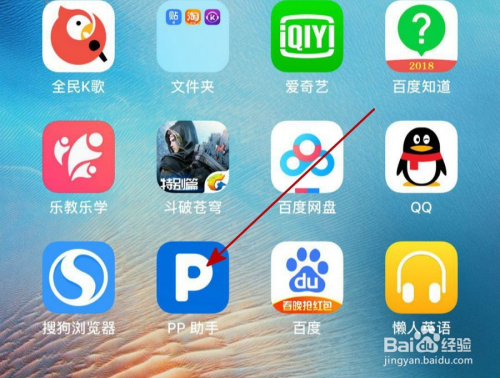 这时我们点击安装在手机上的“PP助手”并打开,如下图