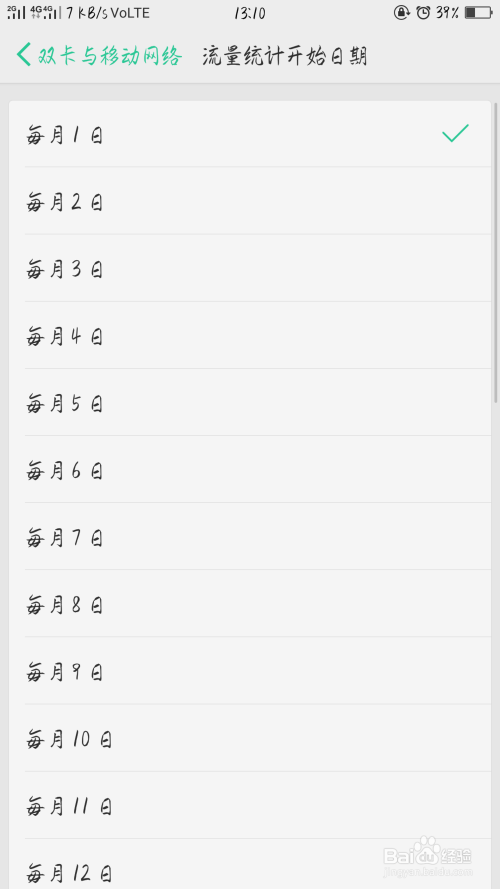 上面有具体的日期选择,可以按照运营商的流量统计日期进行设置。避免数据统计犯错。