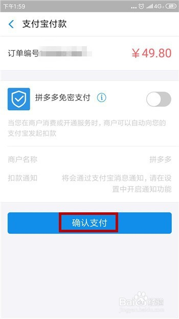 然后就会进入到支付宝付条目界面,点击【确认支付】选项。