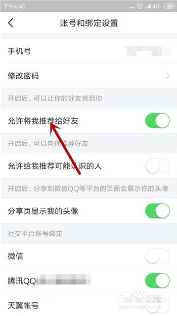 打开后就能看到【许可将我保举给老友】,点击后方打开这个功能。