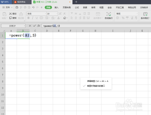 接着输入公式“=power(A1,3)”,注重必然如果英文状况下输入,A1暗示单位格做底数,3暗示立方幂次。