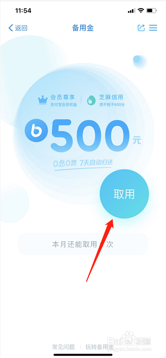 进入备用金界面,点击“取用”;