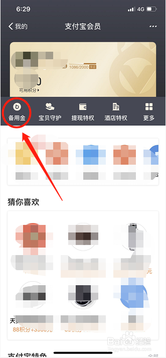 在支付宝会员界面,点击“备用金”;