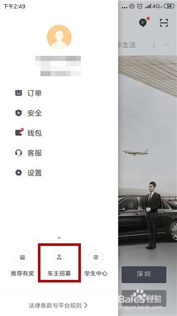 然后在左侧呈现的界面中找到底部的【车本家儿招募】选项并点击。