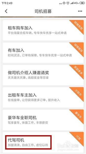 接下来在车本家儿招募里就能看到【代驾司机】了,点击起头申请代驾司机。