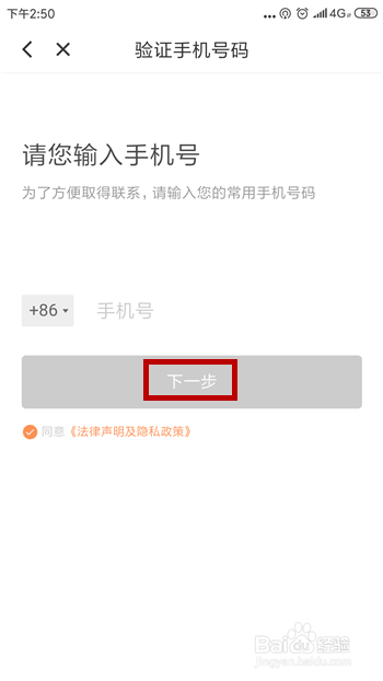 首先需要对我们的账号进行验证,输入手机号码后点击【下一步】。