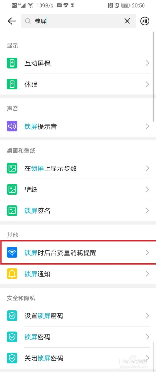 在搜刮栏输入“锁屏”,即可看到所有与锁屏相关的设置。
