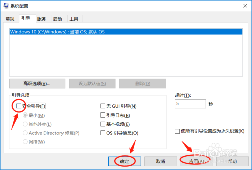 在平安模式设置完毕今后,需要反复以上操作,将“平安指导”前的√去失落,然后点击“应用”和“确定”,不然电脑将永远无法退出平安模式。