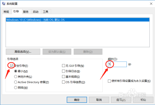 在“平安指导”前打√,将“超时”设置为5秒;