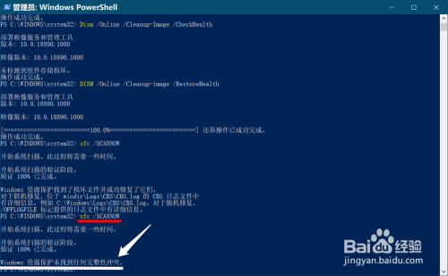 Windows 资本庇护找到了损坏文件并当作功修复了它们;