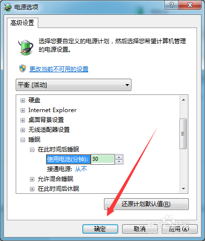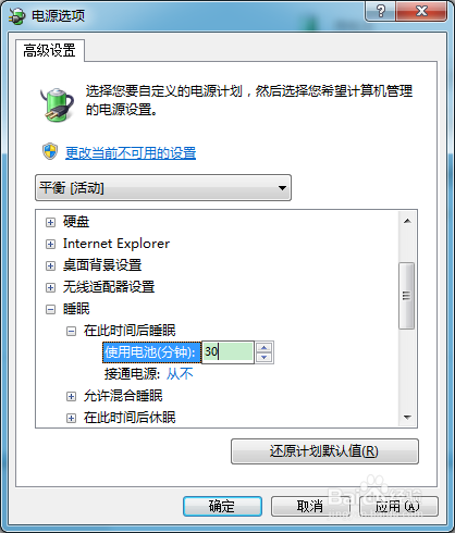 点击利用电池后的蓝色字样,在设置框中设置为30;