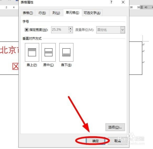回到“表格属性”对话框后再次单击“确定”即可。
