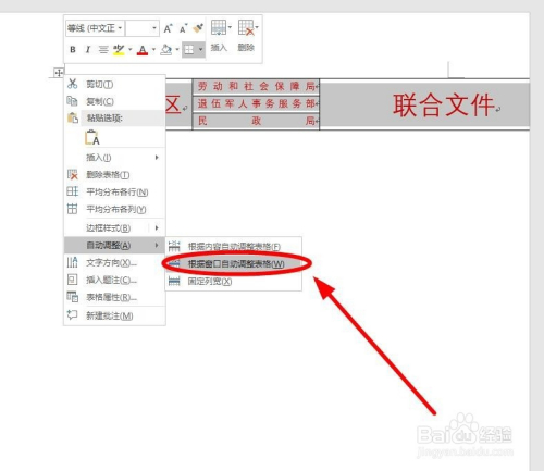 这时,程序会主动弹出下一级菜单。在此中选中“按照窗口主动调整表格”单击